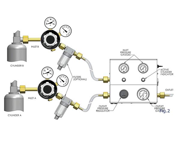 Le basculateur permet le changement automatique de bouteille lorsqu’une des bouteilles est vide.